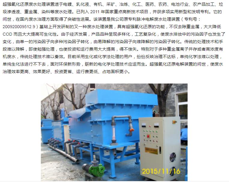 企業(yè)家在線發(fā)布:超強(qiáng)氧化還原廢水處理裝置 攻克廢水處理難題