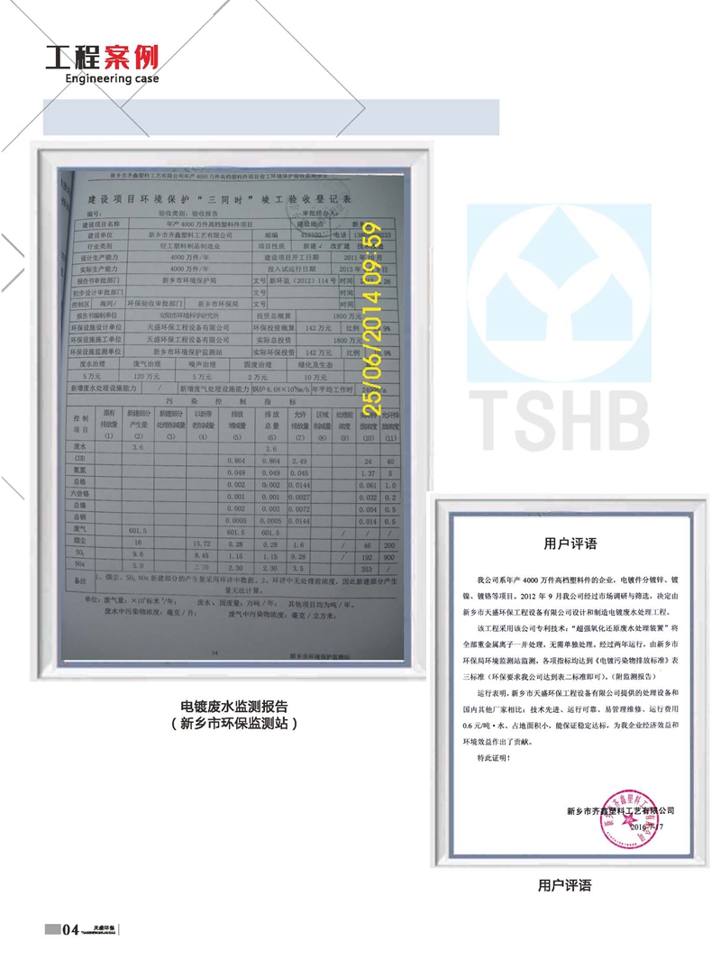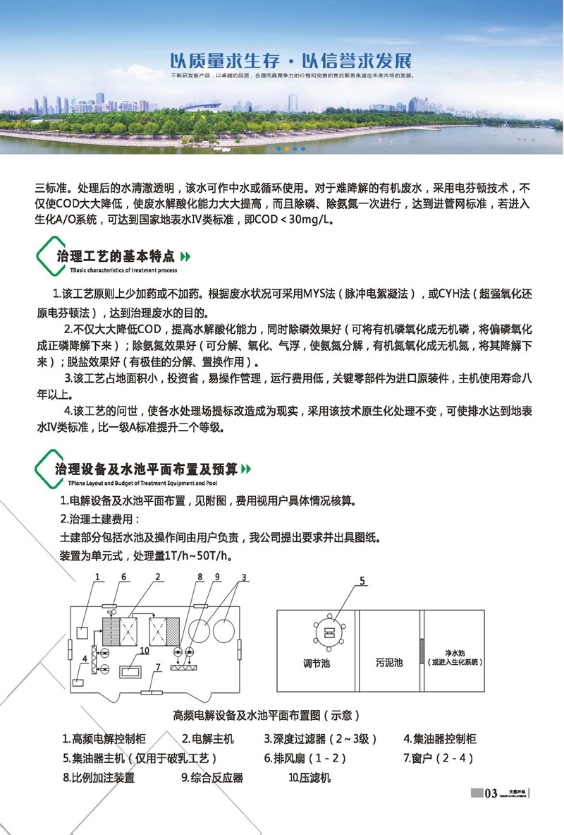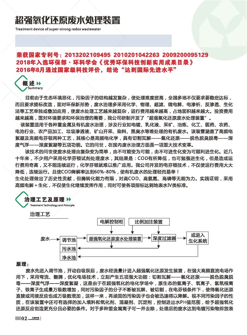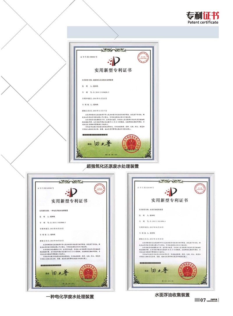 公司始建于1986年,以處理各種有機廢水、各種重金屬廢水為主,獨立研制開發(fā)多種節(jié)能環(huán)保產(chǎn)品,已獲多項國家發(fā)明及新型專利一種電化學廢水處理裝置 ZL 2013 2 0210949.5。公司堅持“以質量求生存、以信譽求發(fā)展、以市場為導向、以技術為依托”的宗旨。